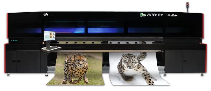 • The 3.5 metre EFI VUTEk X3r roll-to-roll LED printer engineered for high volume production of indoor and outdoor sign and display graphics. The VUTEk X3r printer integrates automation, software, and hardware to support minimal operator supervision of print jobs and an efficient print to finished graphic workflow system.