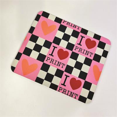 Using the I Love Print graphic as a single creative starting point, our emphasis was on showing how one design can translate seamlessly across multiple products that reflect today’s on-demand buying habits. We started by producing a shaped self-adhesive sticker on the Mimaki CJV200-75 solvent printer/cutter, applied here to a diary but equally suited to countless other surfaces. Stickers remain a powerful, low cost product with broad appeal, particularly in short run and personalised environments and can be as frivolous or practical in their design as required - from ‘I Love Print’ stickers to barcode product decals and safety warning labels.