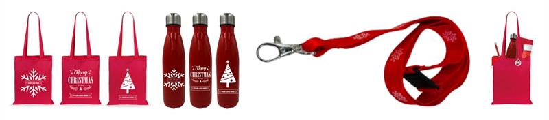 Choose from Santa hats, stockings, bottles, bags, baubles, lanyards and pens.