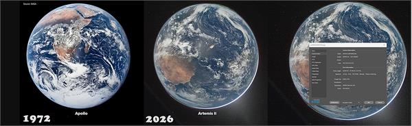 Something a number of viewers commentated on was the comparison between the iconic Apollo capture of the earth, more than half a century ago, and the present day one. That one of course would have been on film, compared to digital, but at least at first glance, it looked like a better picture. The truth, however is hidden in the picture in plain sight, as most photographers would spot fairly quickly.